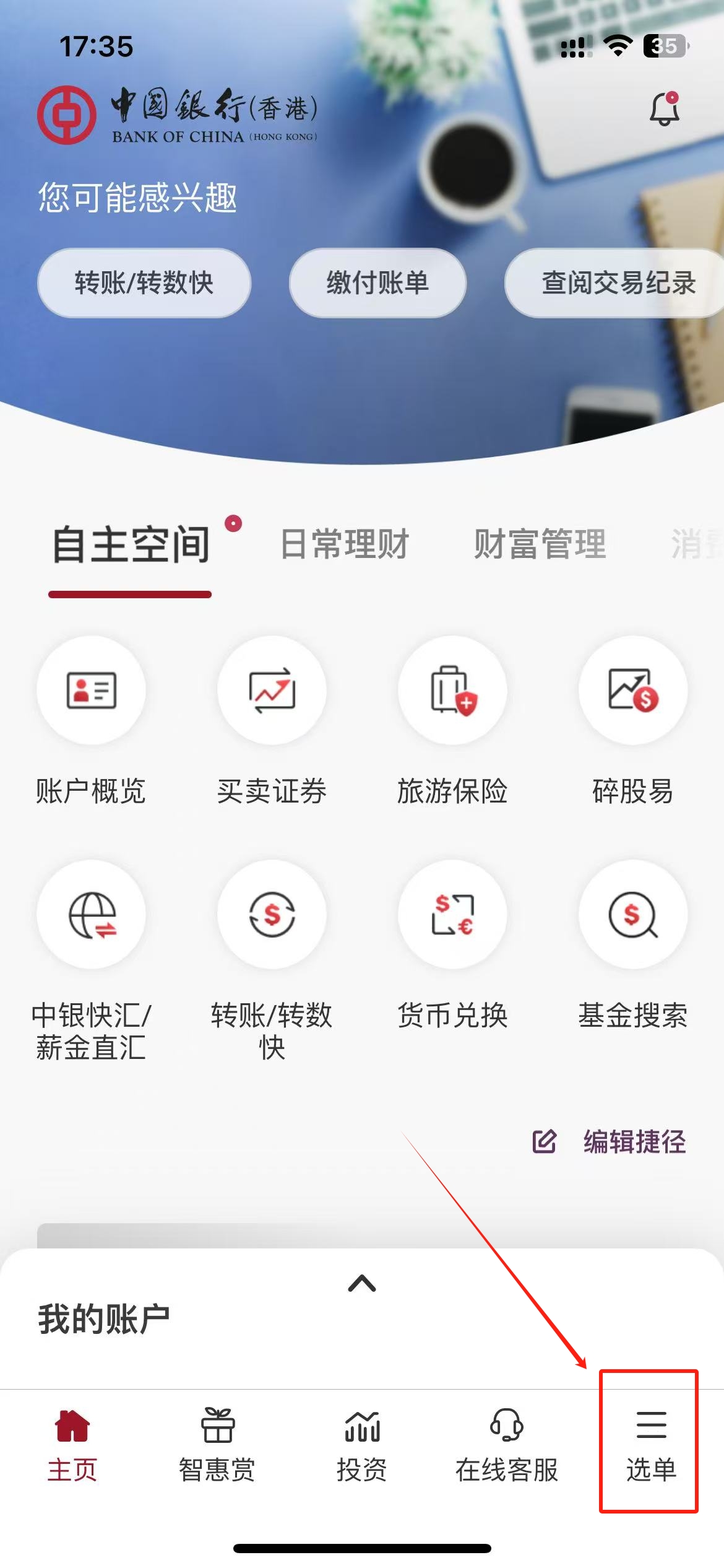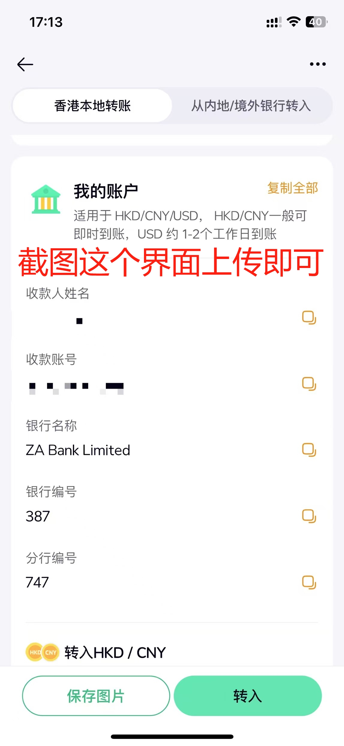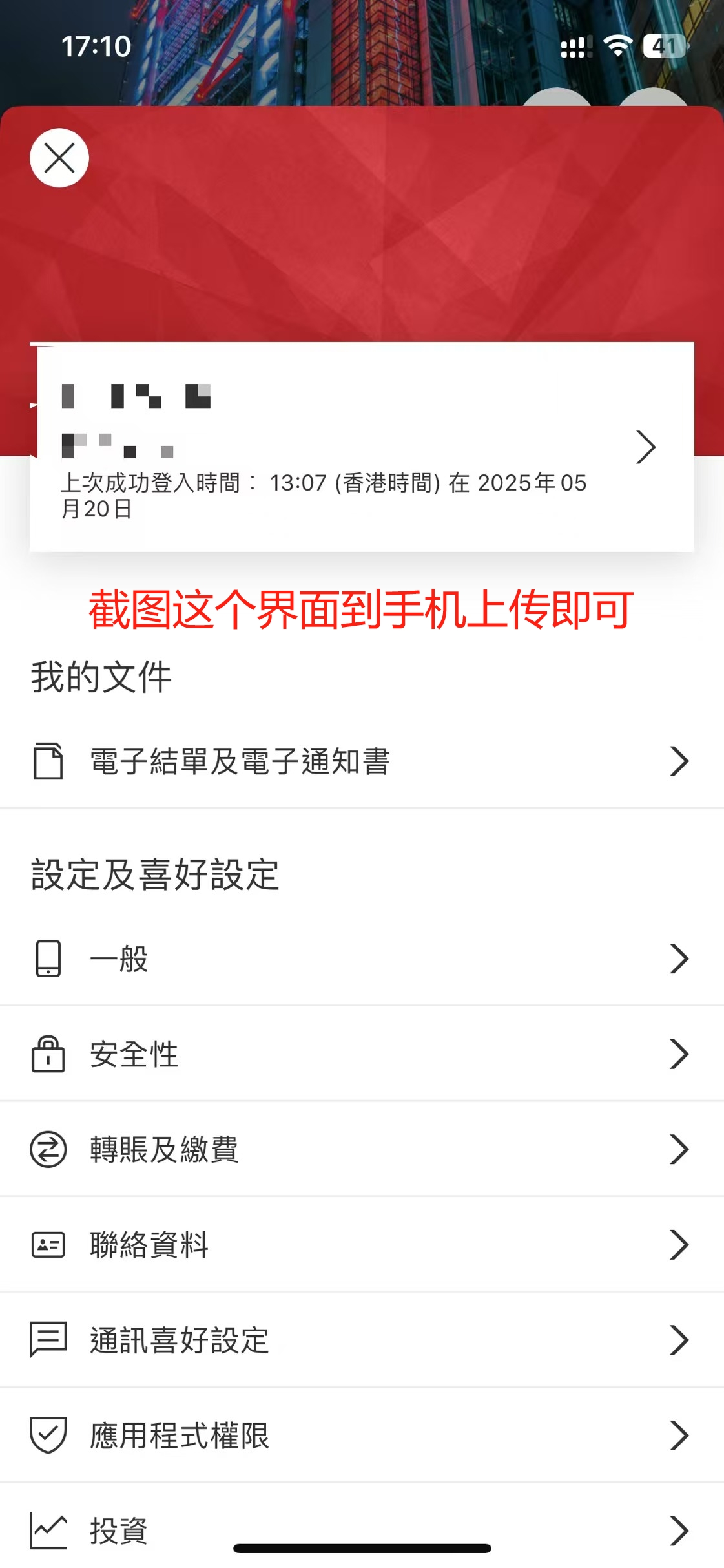打开中银香港APP-点击选单-截图即可(要显示出名字)