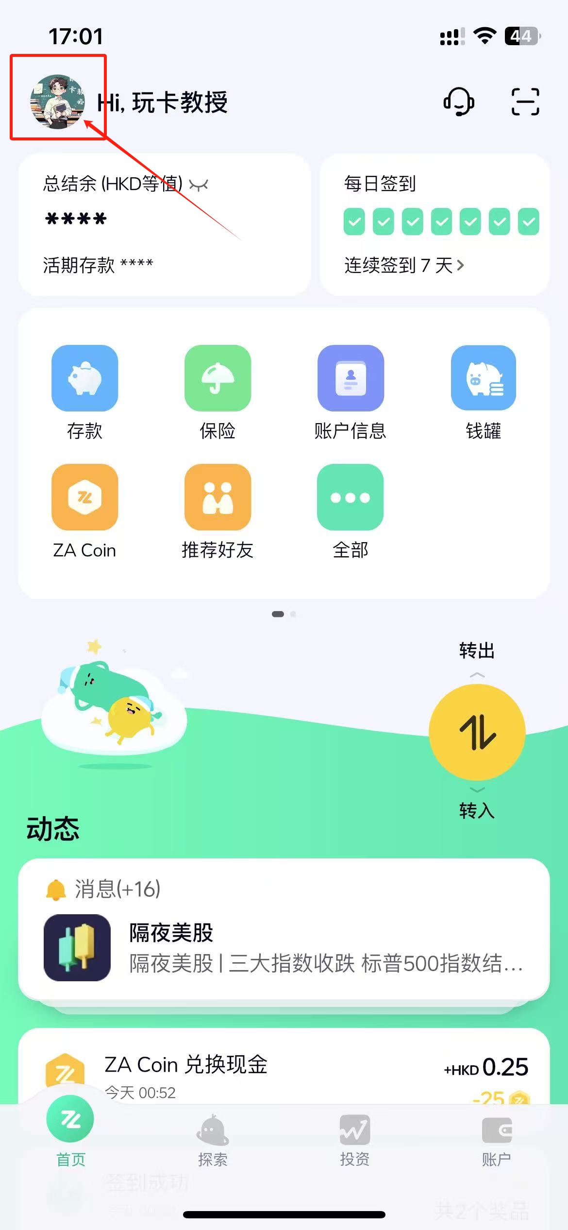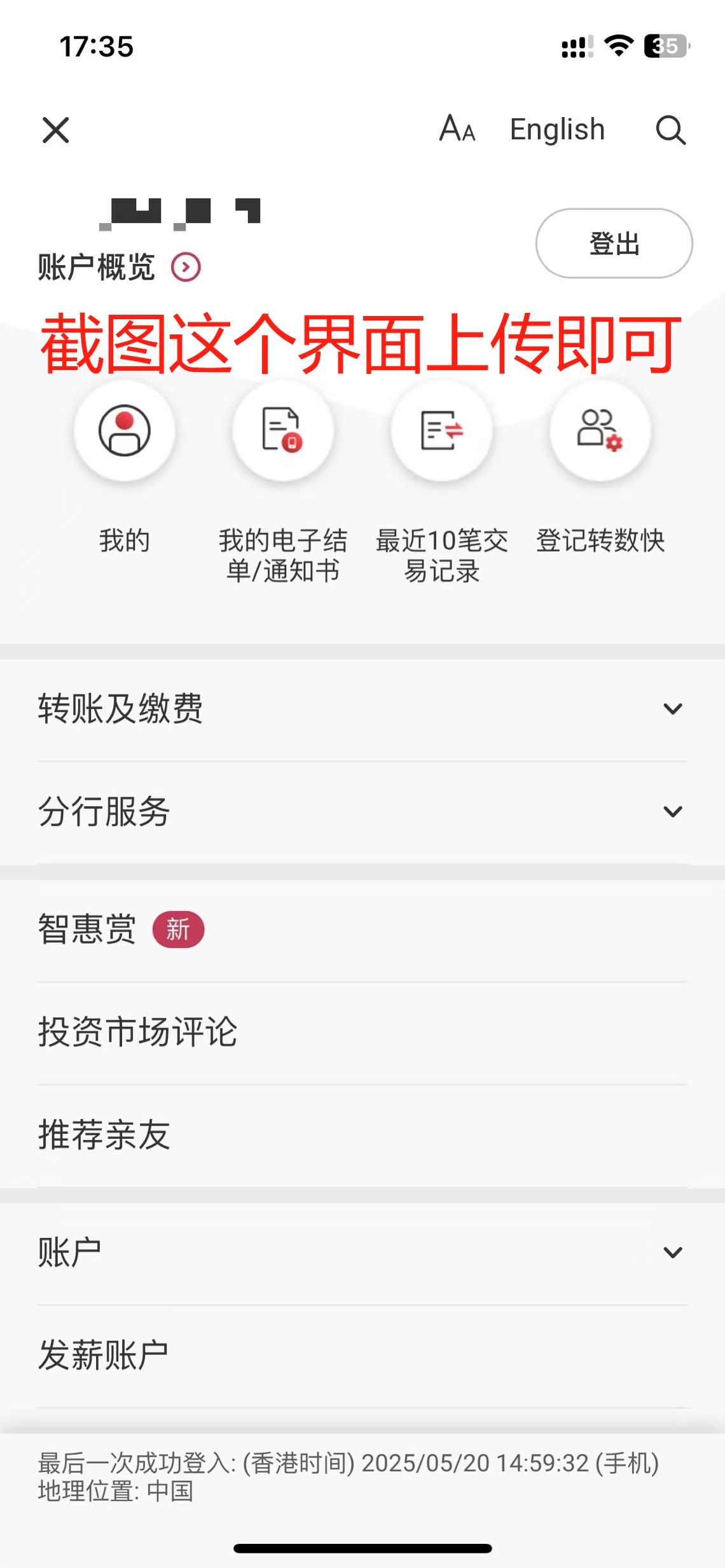 打开汇丰APP-点击右上角-进入个人中心,截图即可(要显示出名字)