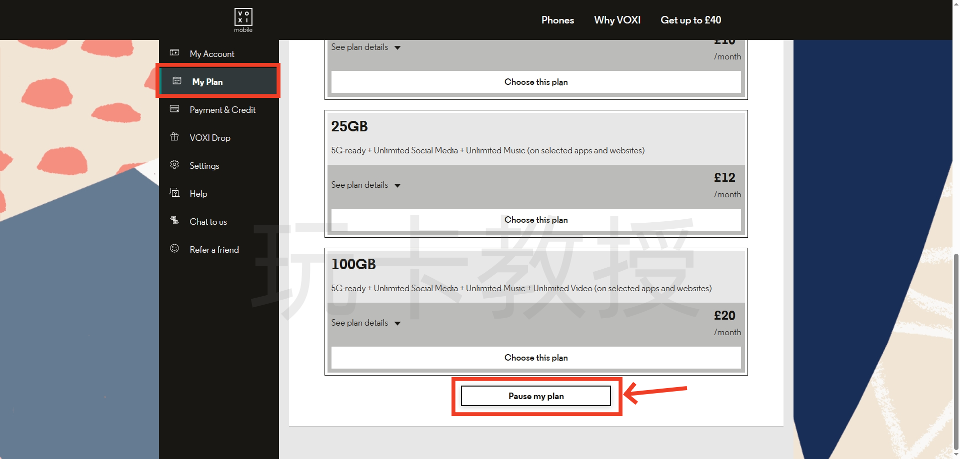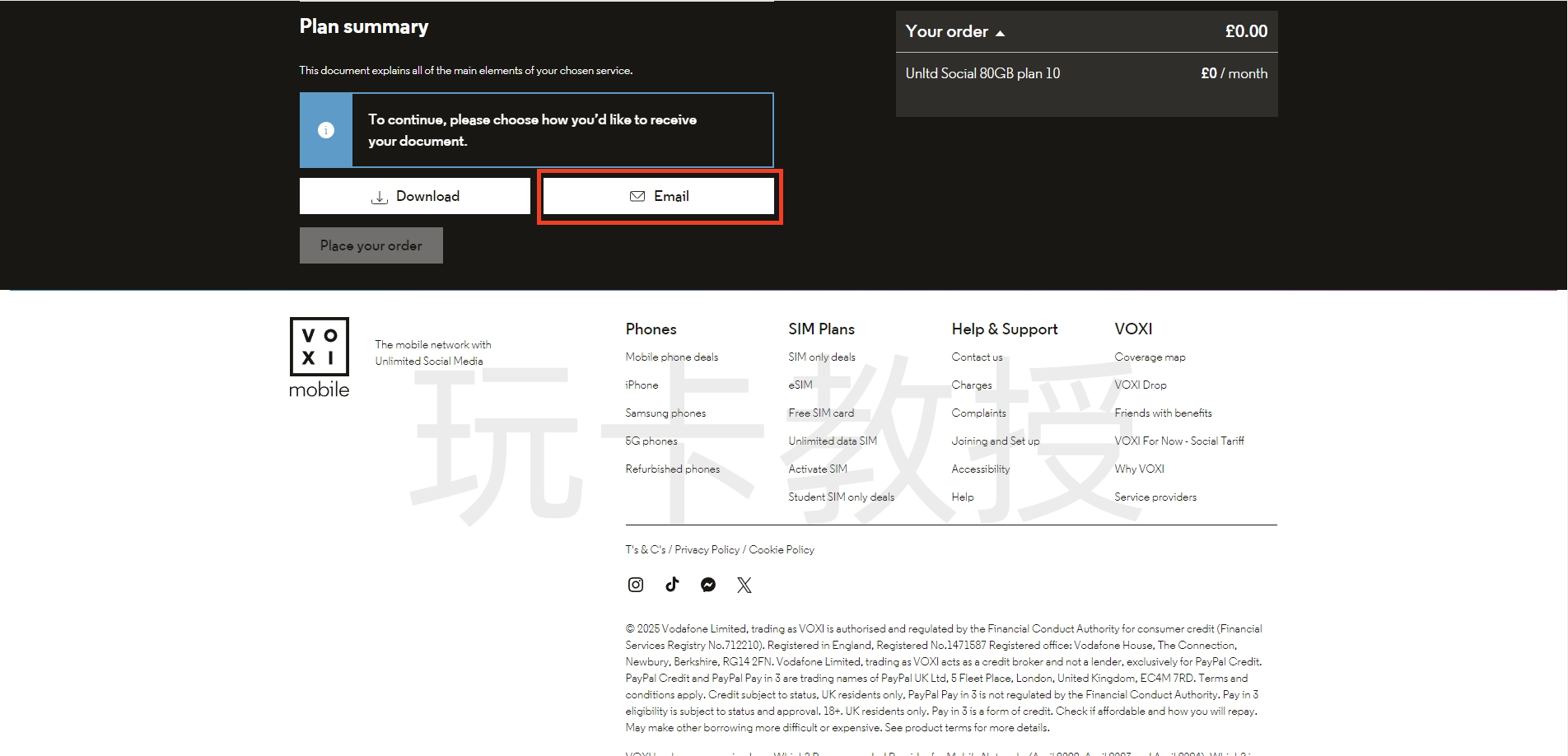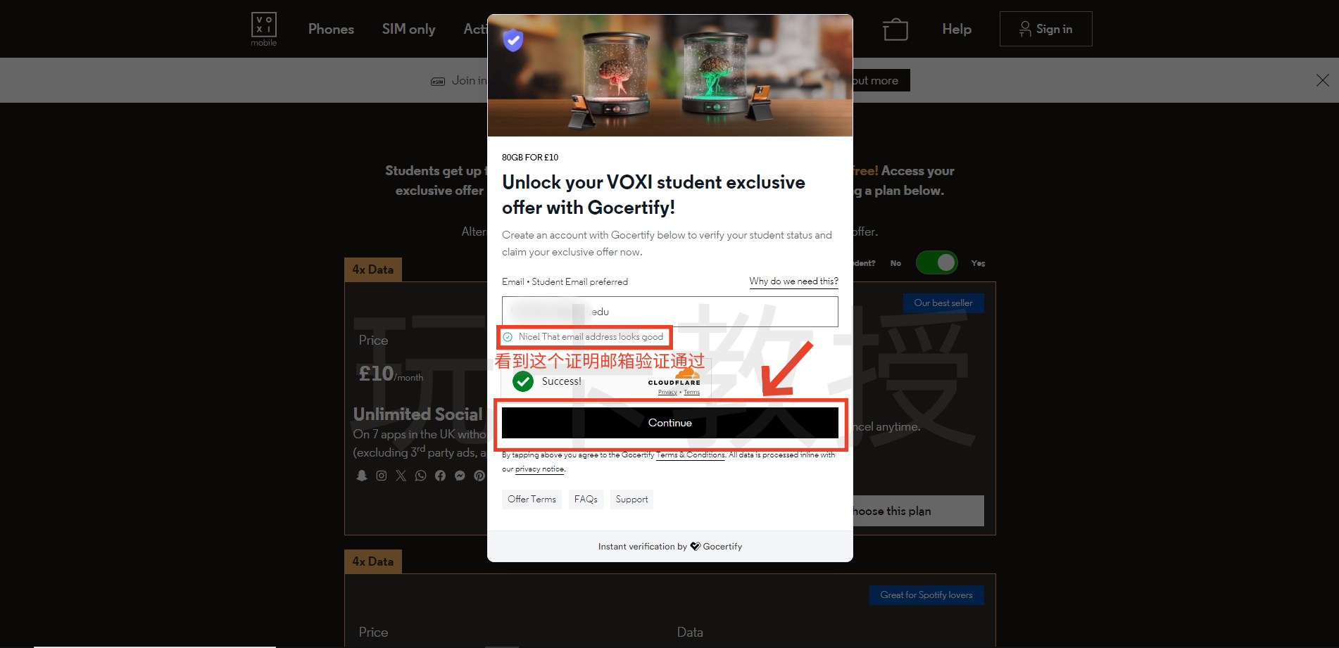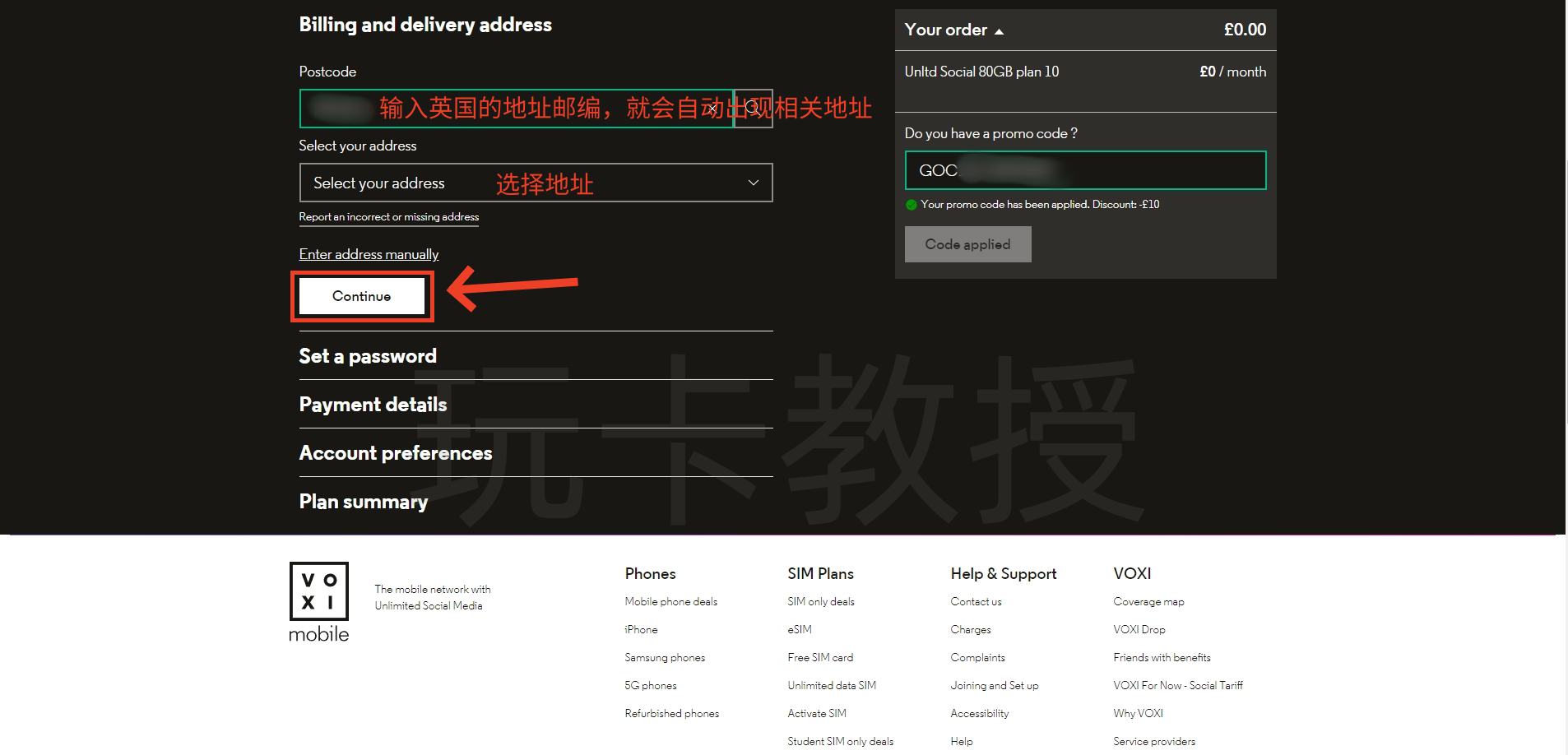 进入:https://www.voxi.co.uk/acquisition/students,选择10英镑的套餐,点击:Choose this plan
