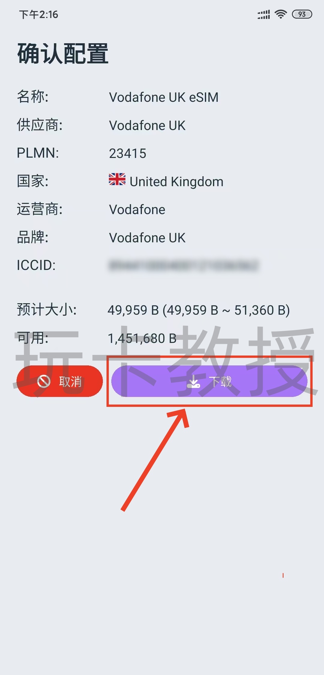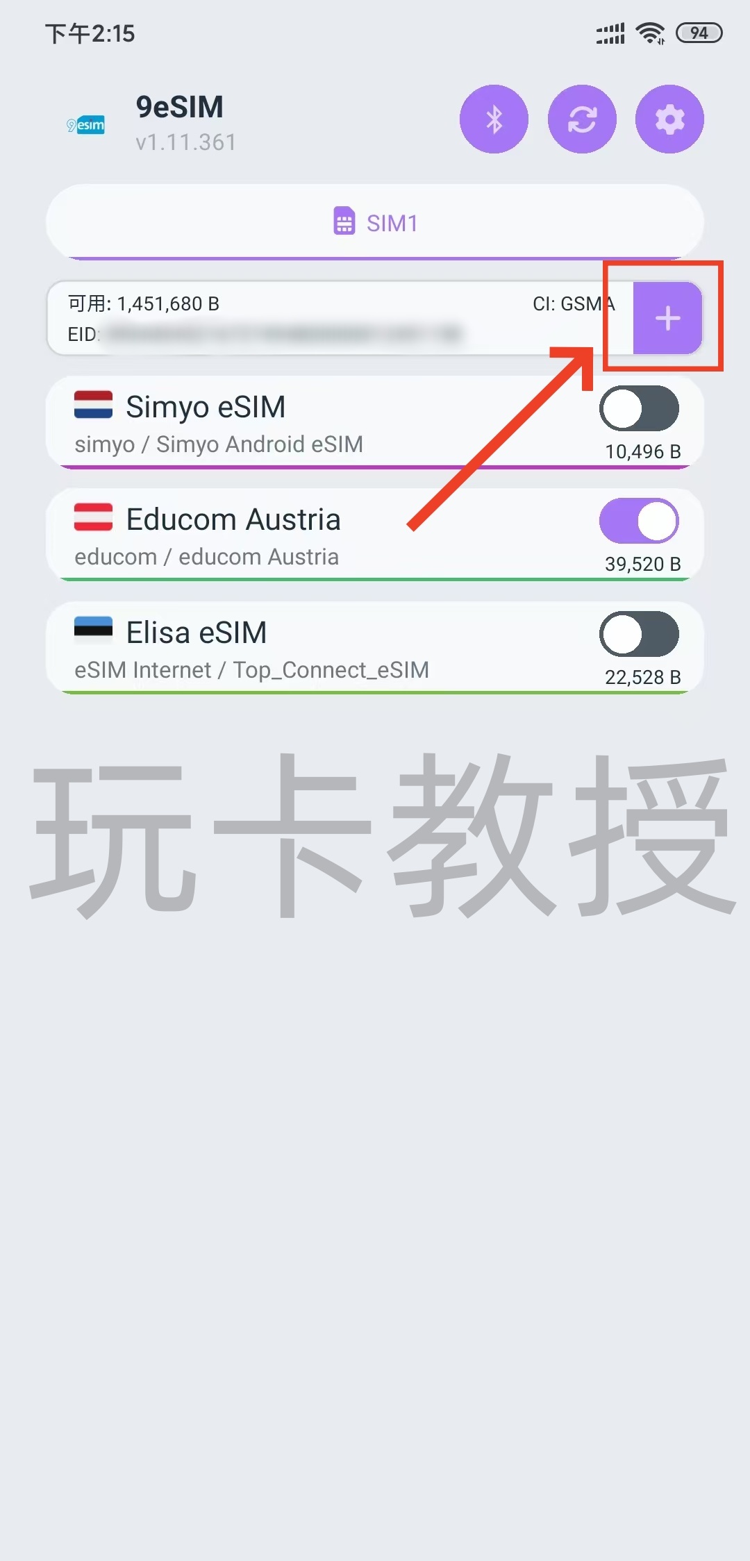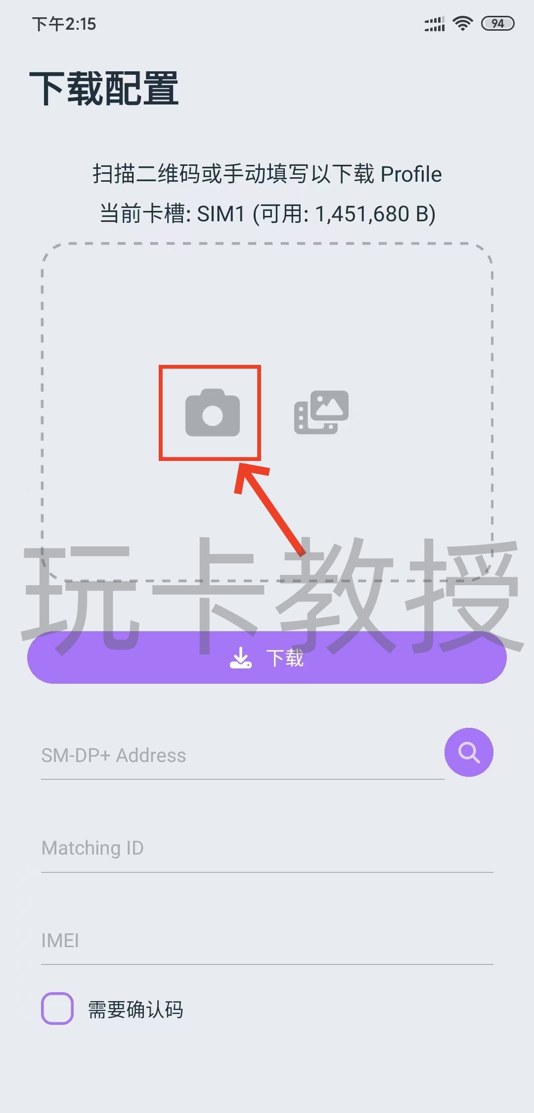 接下来我们,打开9esim,点击:左上角“+”,扫描PDF中的eSIM二维码,点击:下载