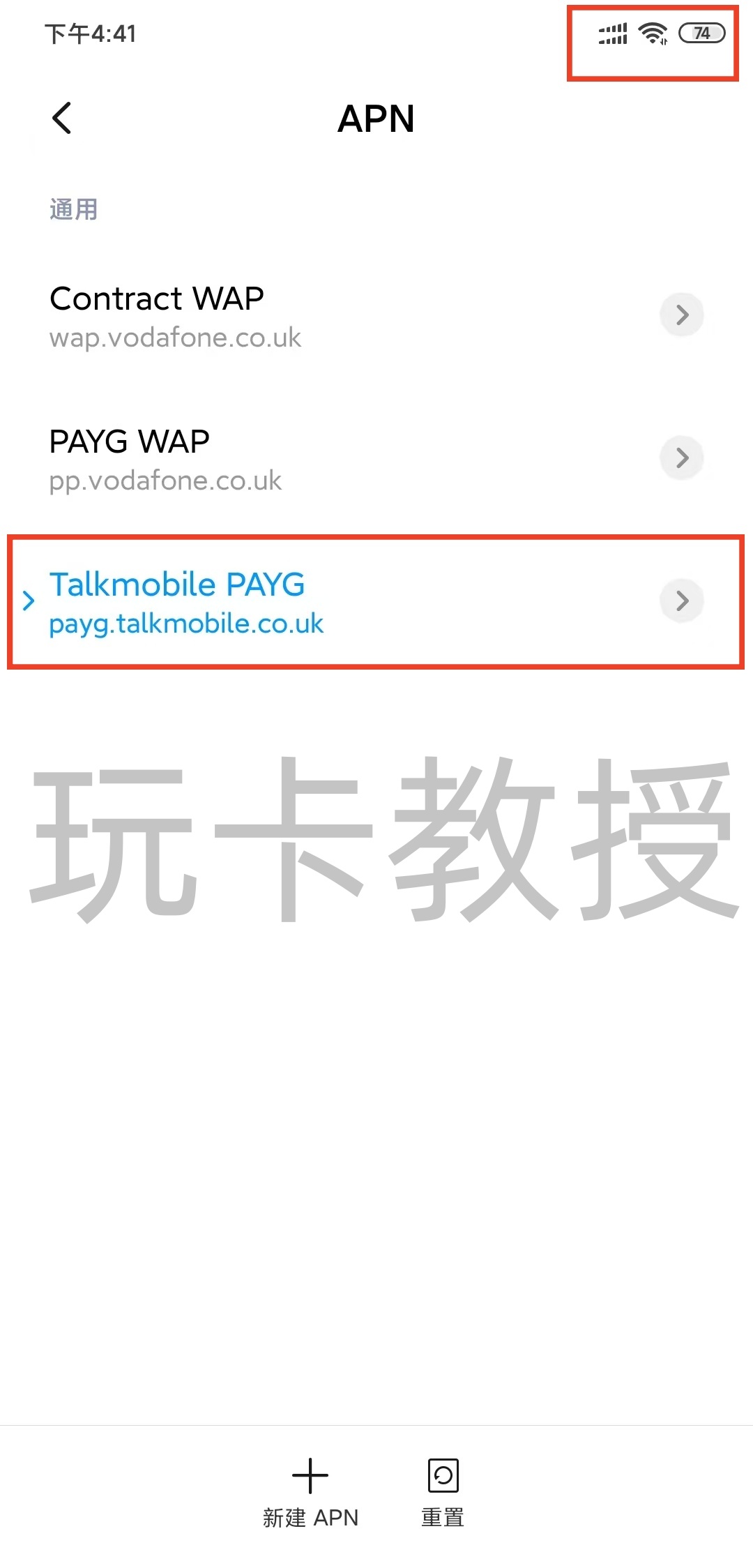 保存后,切换到 Talkmobile PAYG,等待2-3分钟就会出现信号
