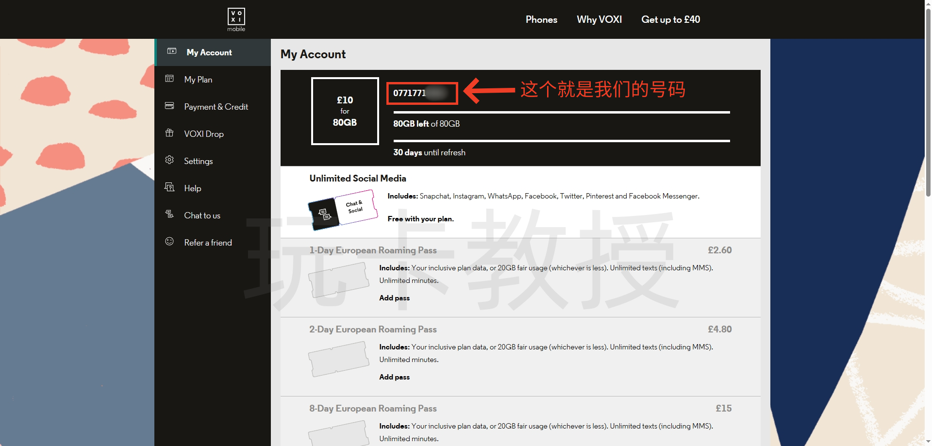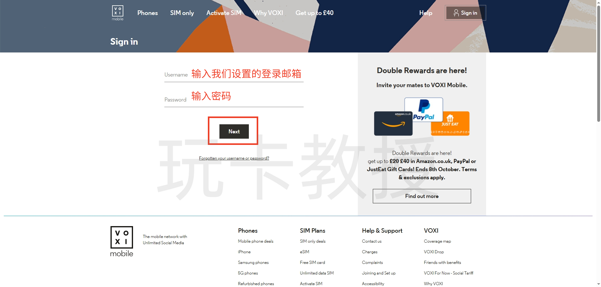 接下来看看如何查看我们的号码,打开:https://www.voxi.co.uk/sign-in,进入号码管理后台