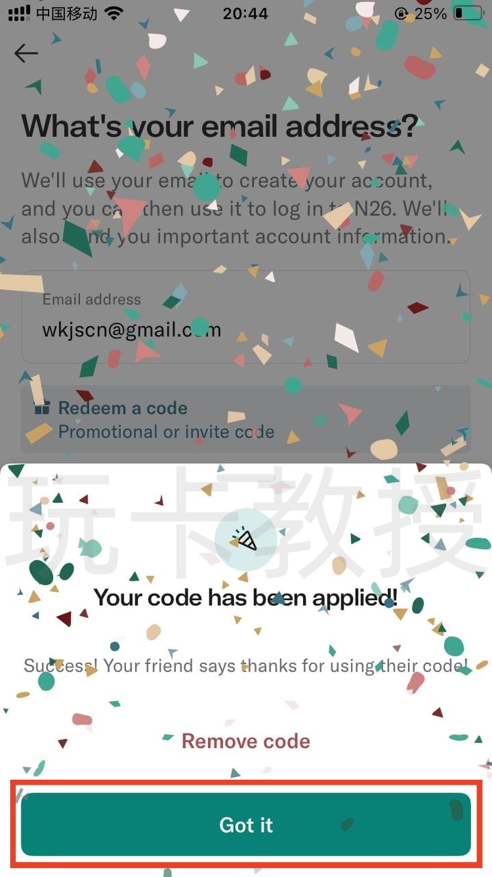 输入您的海外邮箱,点击:Redeem a code,输入邀请码:jiajunl3916(通过我邀请码,开户后入金40欧首次消费大于30欧,我额外返现15欧奖励给您)点击:Got it