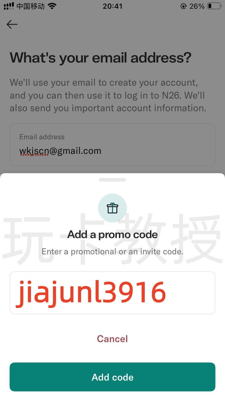 进入:https://n26.com/r/jiajunl3916,扫描二维码,就会自动转跳到应用商店