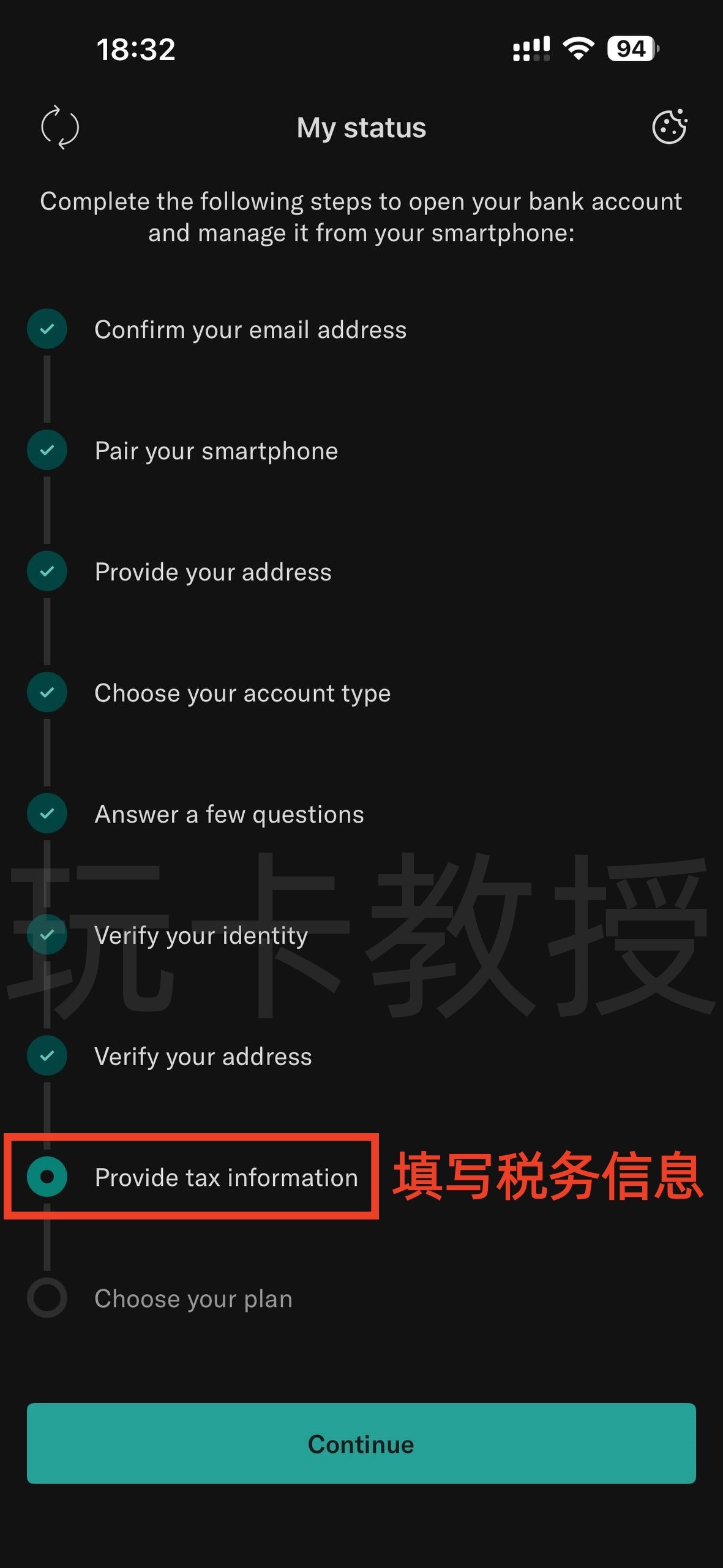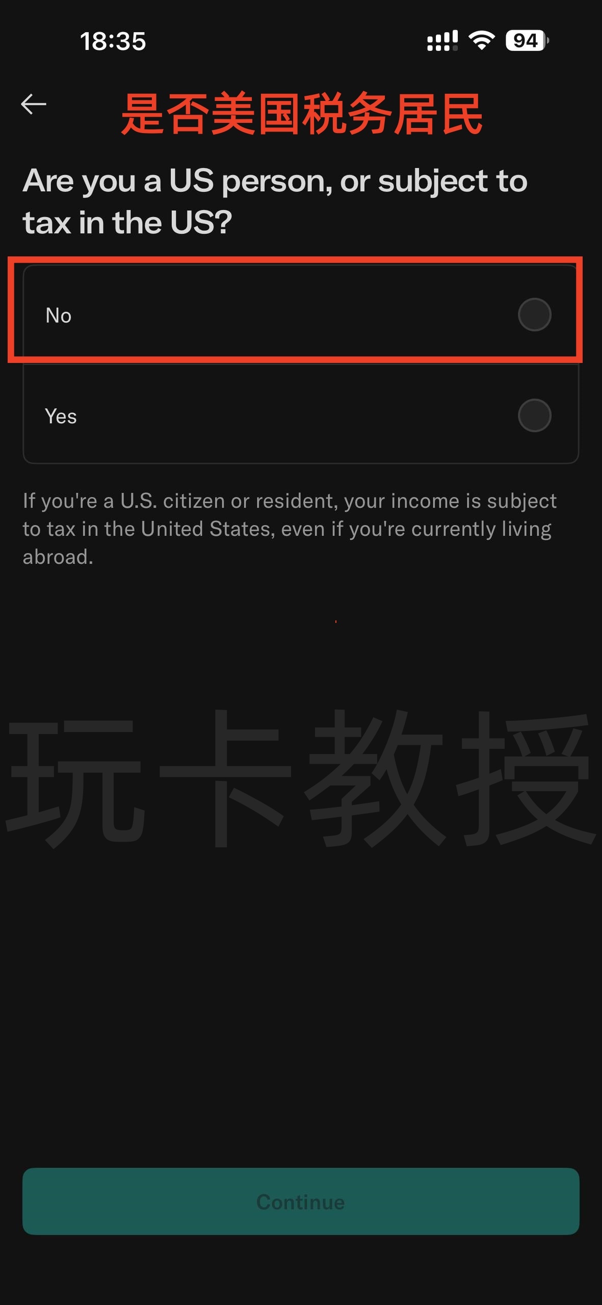 大概过了15分钟就收到了N26开户成功的邮件,点击:Open the app,填写税务信息,点击:Continue,是否是美国税务居民,选择No,点击:Continue