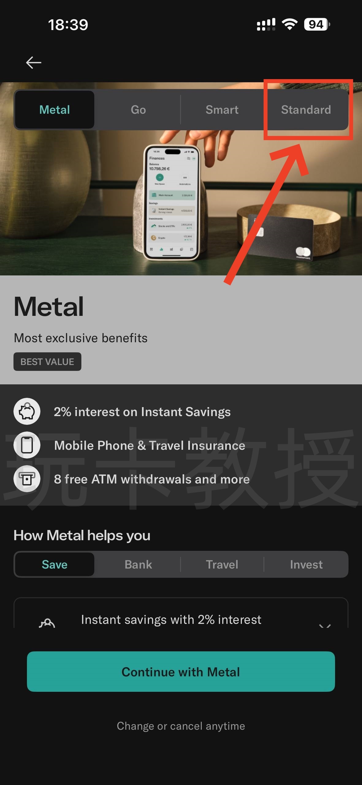 | Metal | 16.90€ | 金属卡+现金返现 |