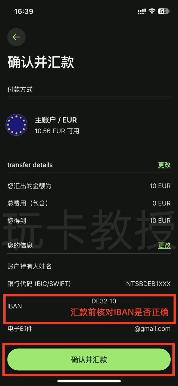 输入汇款金额,汇款前核对IBAN正确,点击确定并汇款,基本上是秒到N26