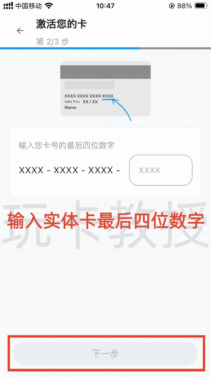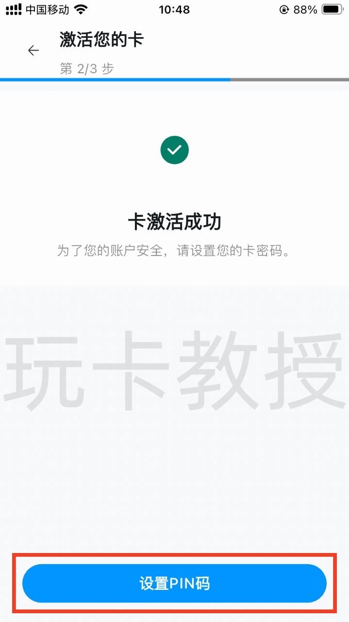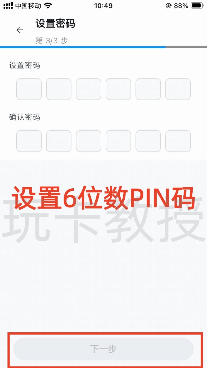 输入6位数字的PIN码,点击:下一步,就激活完成了,点击:小眼镜,可查看卡片详情