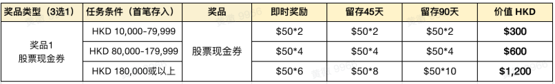 - 首次入金/转仓18万HKD以上,24*50(1200港币)现金券