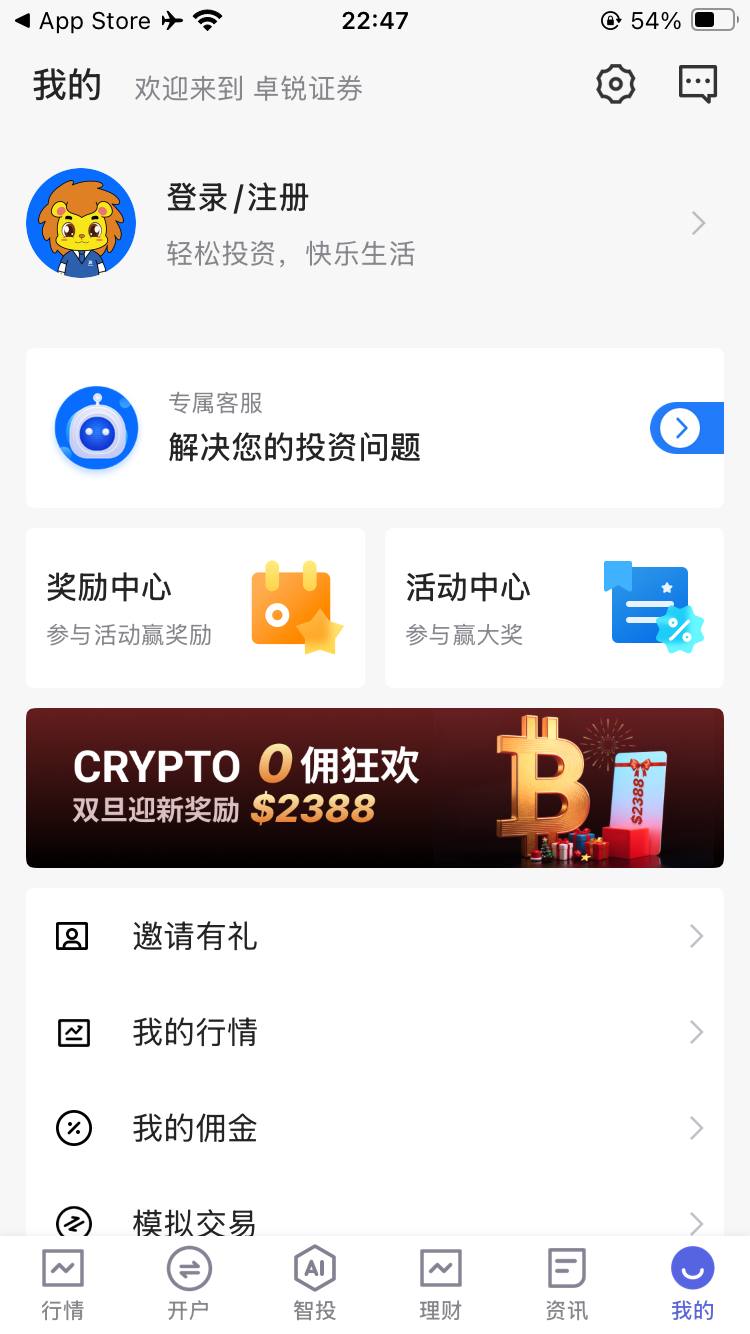 在苹果/安卓应用商店搜索:卓锐证券,下载并打开,点击-我的-登录/注册-输入手机号,获取验证码登录,设置密码