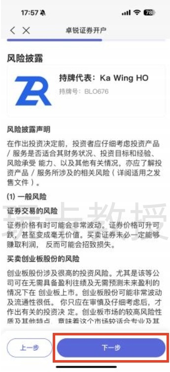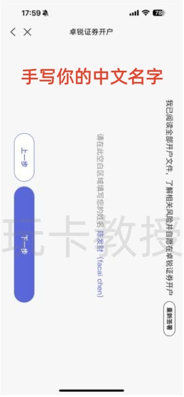 风险披露-签名(填写自己的中文名),提交后等待审核即可