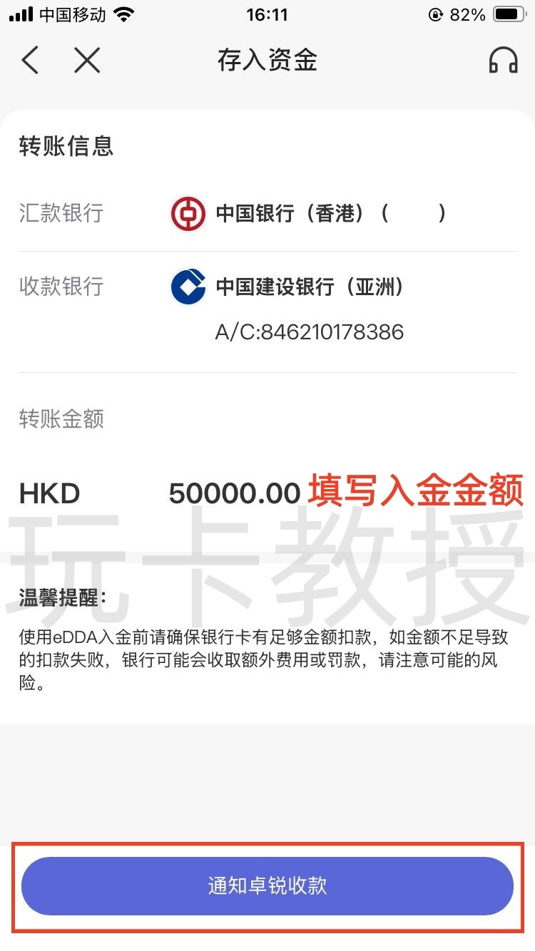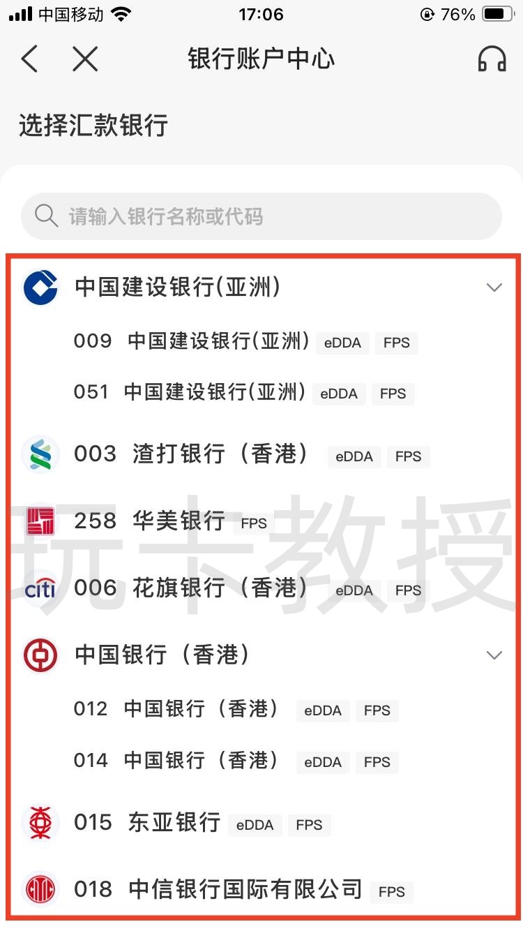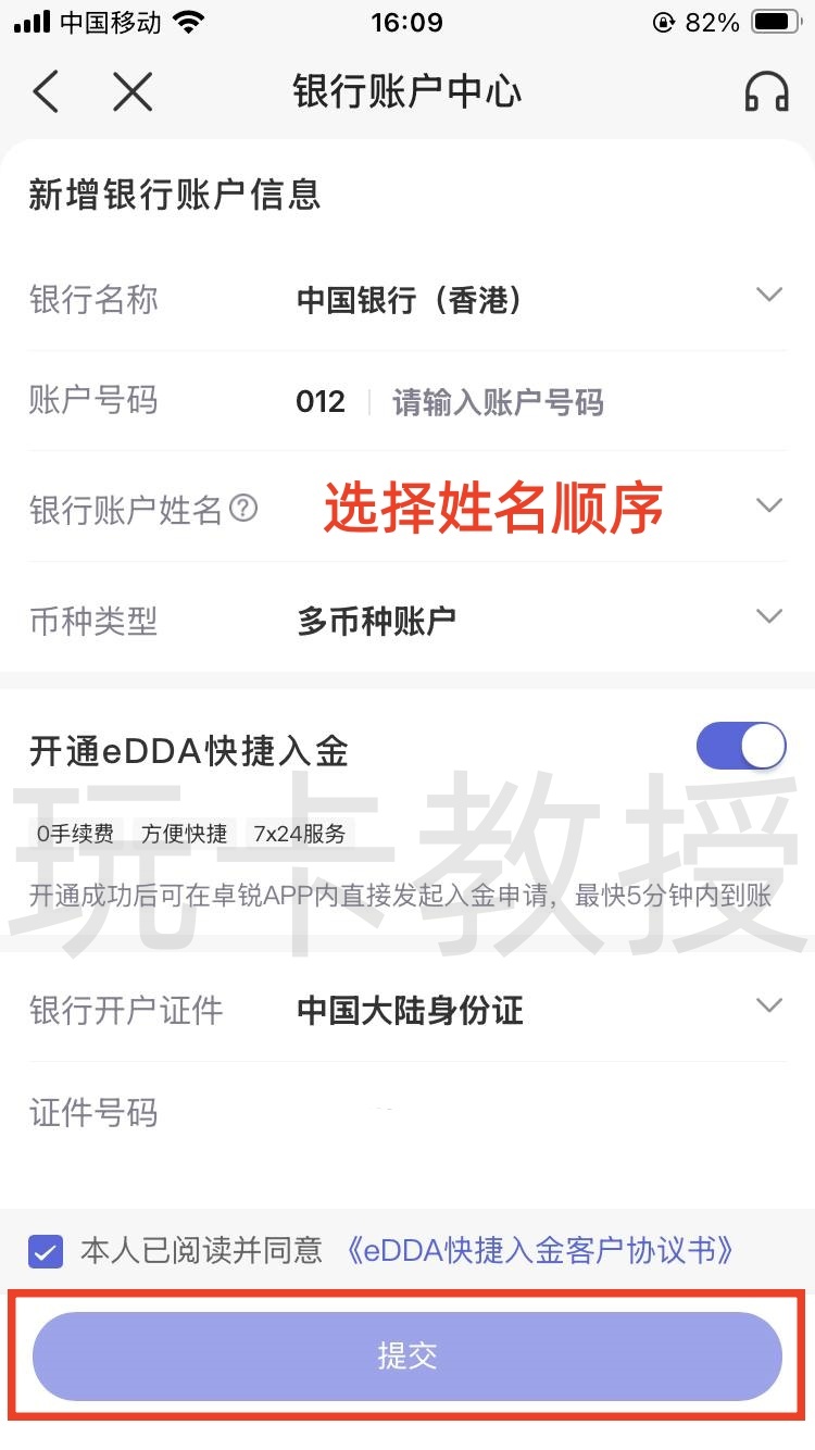 香港银行卡-选择你的银行-输入你银行账号,银行账户姓名的顺序:要和你银行账户的姓名保持一致,选择多币种,开通eDDA快捷入金