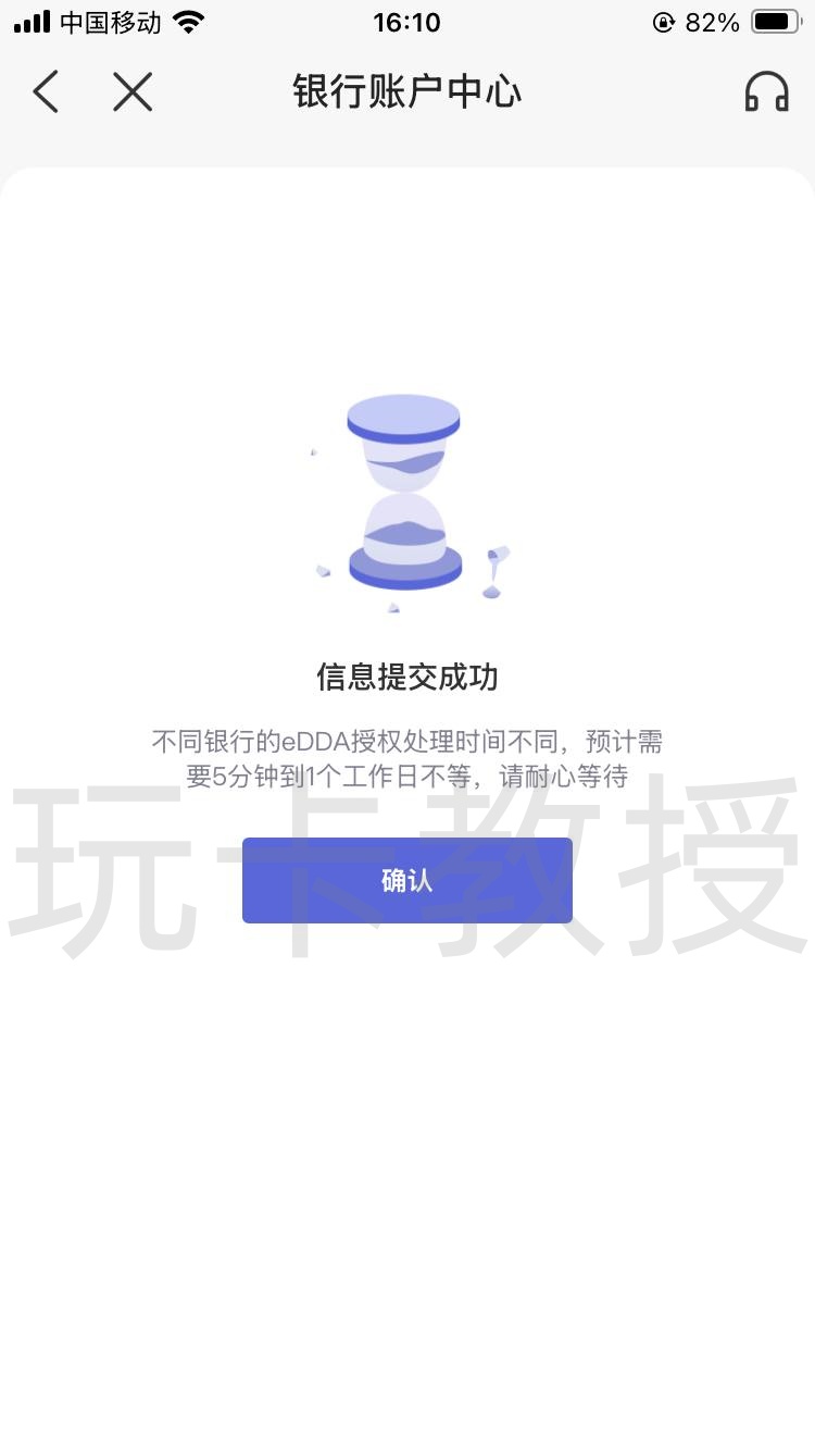 等待审核,一般情况5分钟内就会开通成功,开通后,回到存入资金,选择刚才添加的银行卡-eDDA