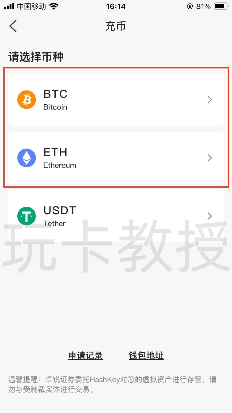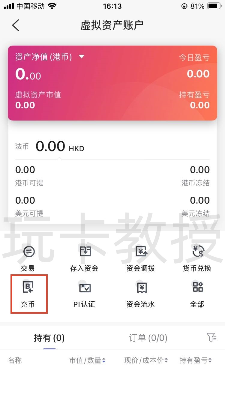 虚拟资产:中国内地用户需要海外地址证明开通,开通后-充币-没有专业投资者认证只能入金BTC和ETH