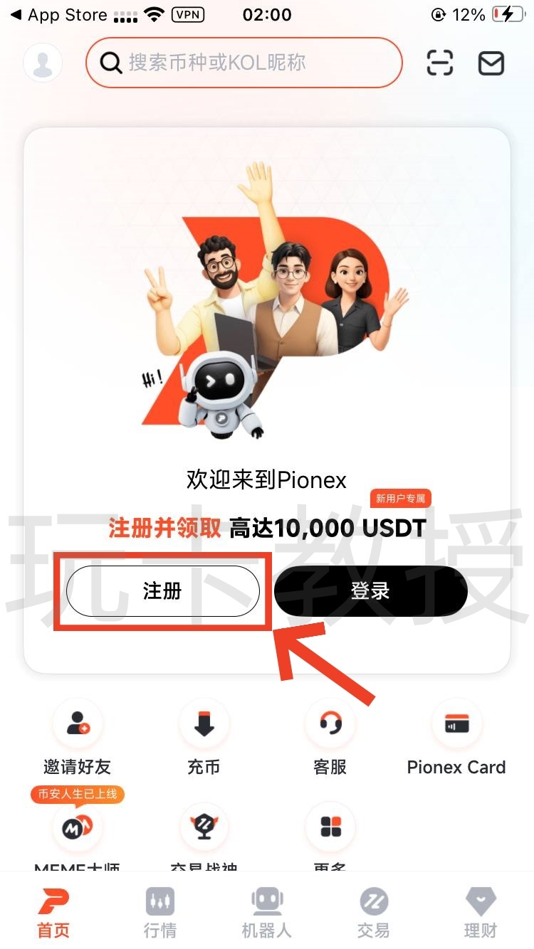 在苹果/安卓应用商店搜索:Pionex,下载并打开,点击注册,我这里直接用通过 Google账号注册