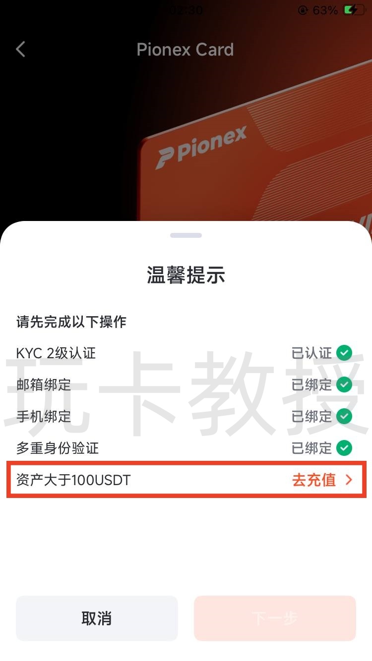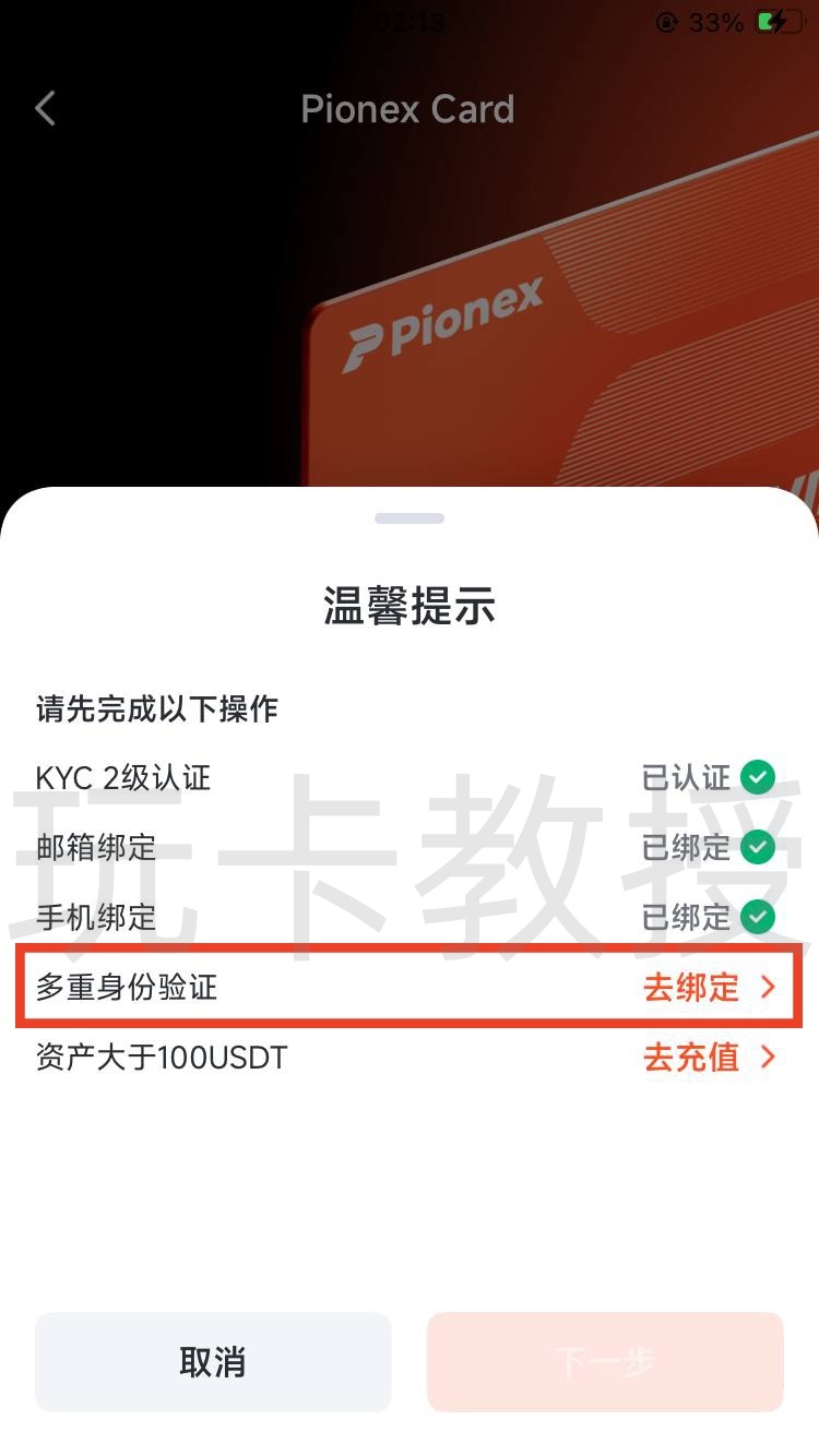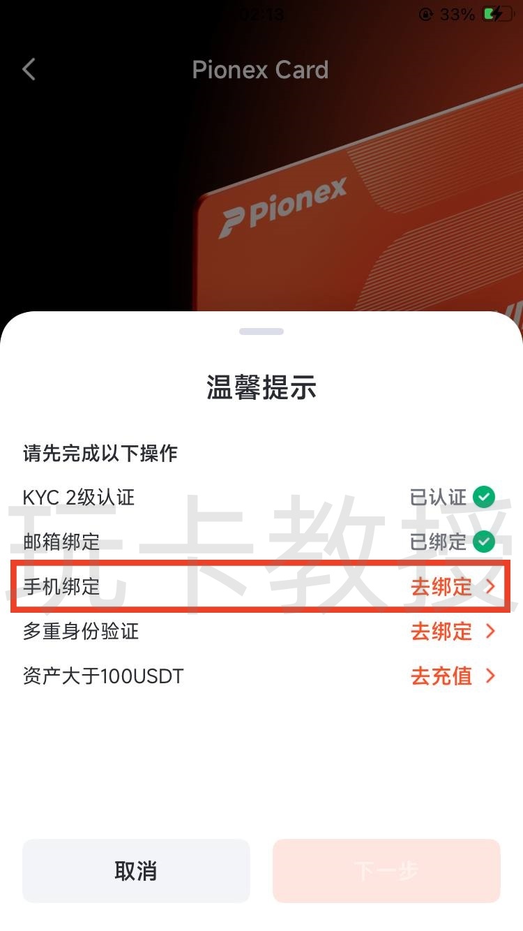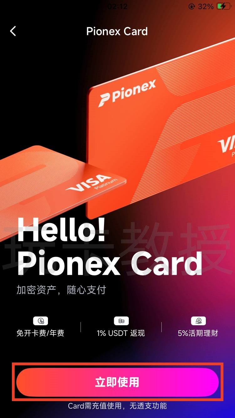 我这里大概2分钟就审核通过,升级二级实名,接下来我们看看如何开通Pionex Card(派网卡),返回到首页,点击Pionex Card,点击立即使用