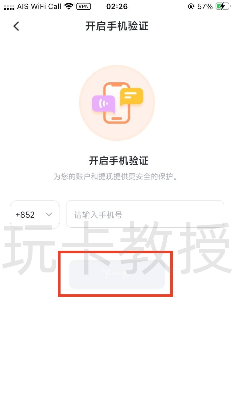 点击绑定手机,输入手机号码,输入邮箱获取到的验证码