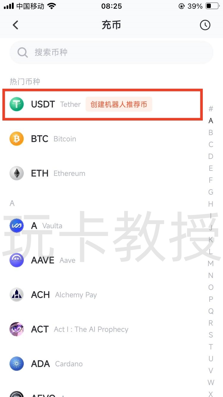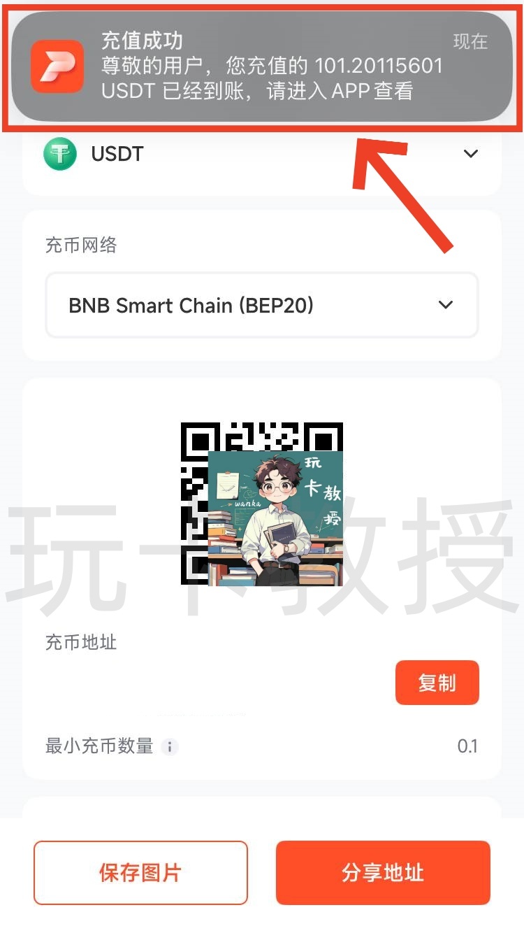 接下来,我们需要充值大于100USDT才能开卡,点击充值,点击USDT