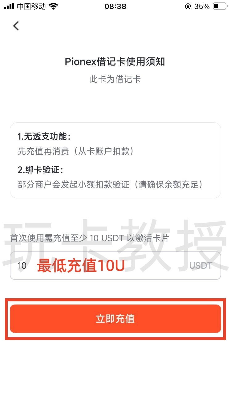 至少要充值10U激活卡片,点击立即充值,就会自动转跳到卡片页面,点击查看卡号可以查看卡片的详细信息