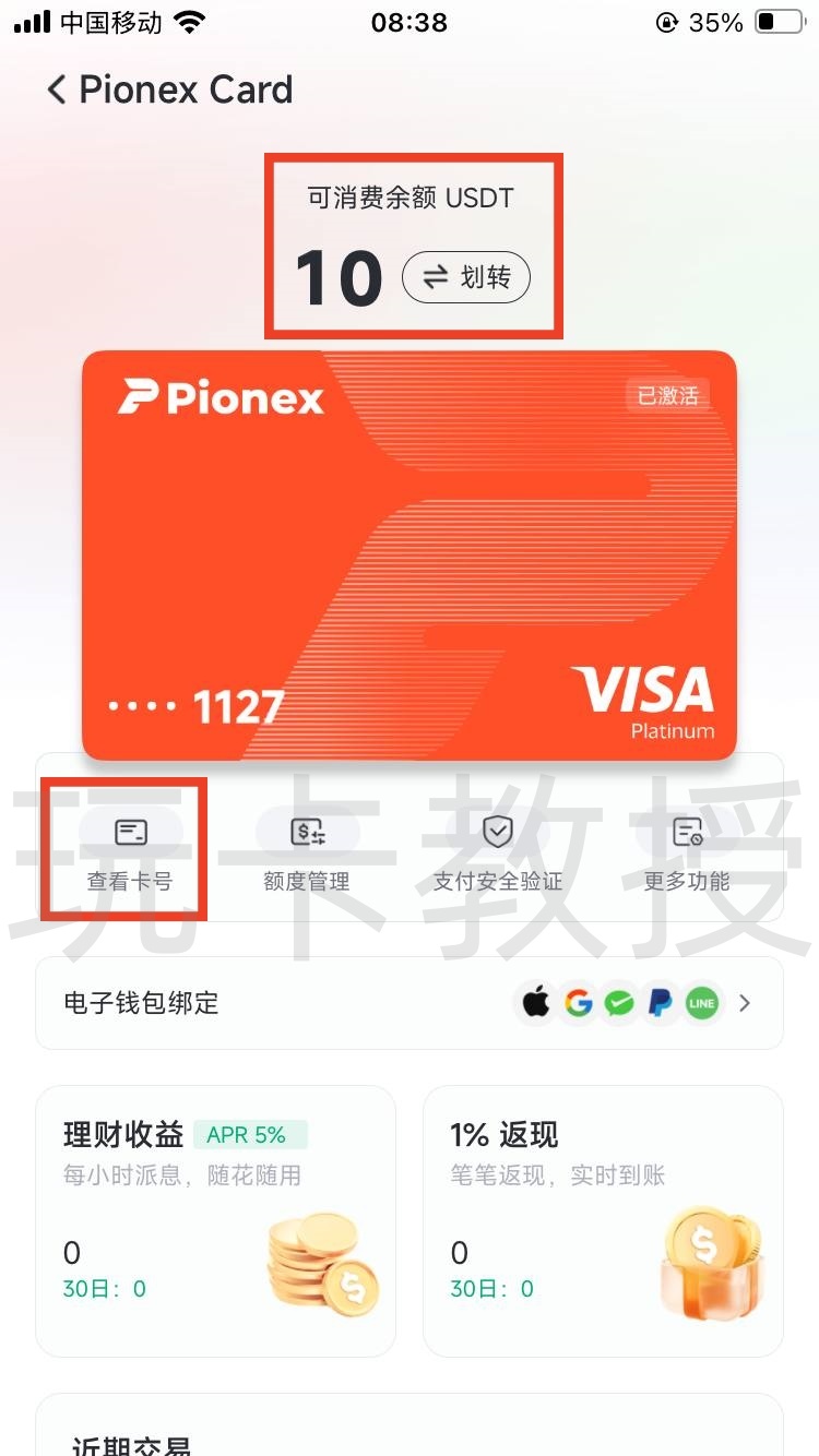 我这里通过币安链充值了101USDT,返回到Pionex Card,点击立即使用